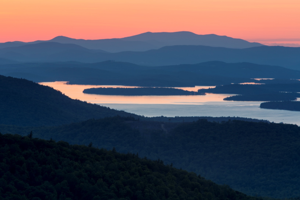 The Belknap Range Conservation Coalition (BRCC) led a guided sunset hike on Piper Mountain, Gilford NH, on June 16, 2019. BRCC members Bev Divaio and Dan Tinkham met hikers at the parking lot at the top of Belknap Carriage Road. Piper Mountain has an elevation of 2044 feet and the trail is .9 miles long. The summit is rocky and flat with great vistas west and east. We enjoyed a nice evening watching the light fade in the west amongst broken clouds. We also played a questions game about the range with prizes sponsored by TD Bank in Gilford and Bolduc Park in Laconia, followed by an explanation of who owns Piper, and what the BRCC is all about. To see the 26 questions and answers, Read More below.